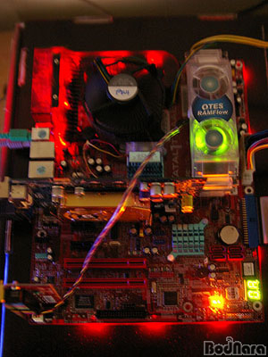 ¸ÚÁø ¸ð½ÀÀ» º¸¿©ÁØ´Ù. (´Ü, OTES RAMFlow ¸Þ¸ð¸® Ä𷯿¡´Â LED°¡ ¾øÀ¸¸ç »çÁø¿¡ º¸ÀÌ´Â ³ì»ö ºûÀº Corsair DDR2 ¸Þ¸ð¸®¿¡¼