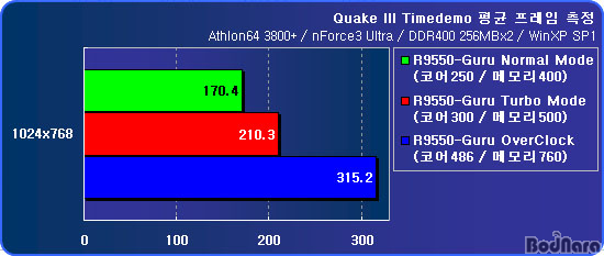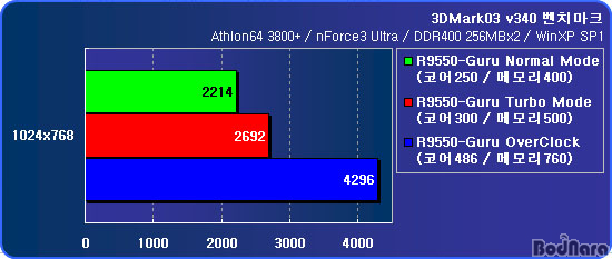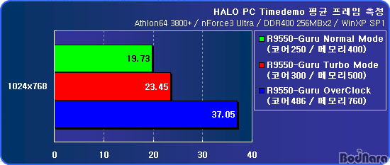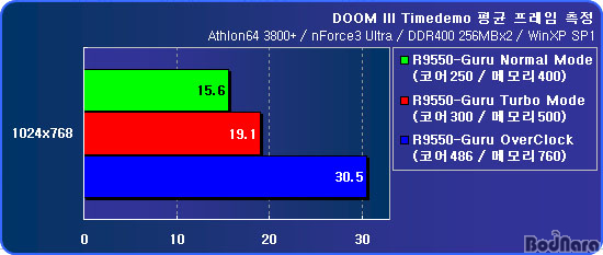 ÇÁ·¹ÀÓ ÃøÁ¤ °á°úµµ DOOM III¿Í ¸¶Âù°¡Áö·Î °ÅÀÇ 2¹è °¡±î¿î Â÷À̸¦ º¸¿´´Ù. ÀÌ·¯ÇÑ ¿À¹öŬ·°¿¡ ÀÇÇÑ ¼º´É Â÷À̰¡ Radeon 9550À»