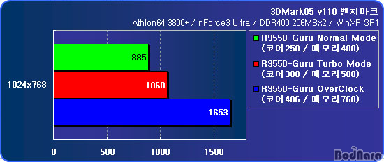 R9550XTurbo-GuruÀÇ ¸Þ¸ð¸® Ŭ·°Àº DDR760MHz À̻󿡼 3D ±×·¡ÇÈÀÌ ±úÁö´Â Çö»óÀÌ ¹ß»ýÇßÁö¸¸, ÄÚ¾î Ŭ·°ÀÇ °æ¿ì OC