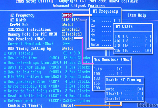 Advanced Chipset Features´Â Ctrl+F1 ۸¦ ÀÌ¿ëÇØ¾ß ³ªÅ¸³ª´Âµ¥, ÇÏÀÌÆÛ Æ®·£½ºÆ÷Æ® ¼³Á¤ ¹× ¸Þ¸ð¸® Ŭ·°, ¸Þ¸ð¸® ŸÀ̹ÖÀ» Á¶ÀýÇÒ ¼ö ÀÖ´Ù.