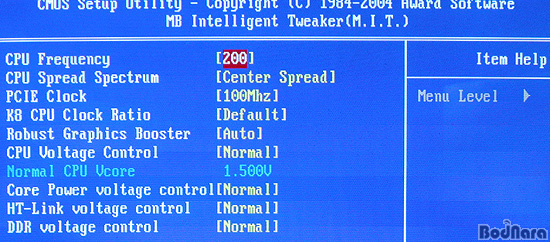 ¹ÙÀÌ¿À½º ±âº» ȸéÀº Ưº°È÷ ´Ù¸¥ Á¡Àº ¾øÀ¸¸ç ¿À¹öŬ·°¿¡ °ü·ÃµÈ ¸Þ´ºµéÀ» µû·Î ¸ð¾Æ¼ MB Intelligent Tweaker(M.I.T.)¶ó´Â Ç׸ñÀ¸·Î ±¸¼ºÇسõ¾Ò´Ù. ÀϺΠ¼¼ºÎ ¿É¼ÇµéÀº Ctrl+F1¸¦ ´·¯¾ß ȸ鿡 Ç¥½ÃµÇ°Ô ÇØ³õ¾Ò´Ù.