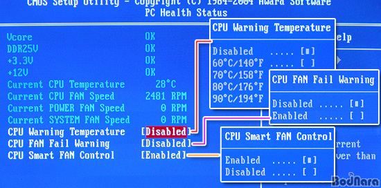 PC Health Status Ç׸ñÀº CPU ¿Âµµ °æ°í ¼³Á¤°ú ÆÒ ÄÁÆ®·Ñ¿¡ °ü·ÃµÈ ¿É¼Ç¸¸ ³ª¿ÍÀÖÀ¸¸ç CPU ¿Âµµ¿Í ÆÒ ¼Óµµ µî ¿Ü¿¡ Àü¾Ð ¸ð´ÏÅ͸µÀº ÇÒ ¼ö ¾øÀ¸¸ç, À©µµ¿ìÁî¿¡¼ GIGABYTE¿¡¼ Á¦°øÇÏ´Â º°µµÀÇ À¯Æ¿¸®Æ¼¸¦ ÅëÇØ ÀÚ¼¼ÇÑ ¸ð´ÏÅ͸µ°ú Á¶ÀýÀÌ °¡´ÉÇϵµ·Ï µÇ¾î ÀÖ´Ù.