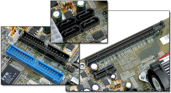 SN25P¿¡ »ç¿ëµÈ FN25 ¸ÞÀκ¸µå´Â º¸µå ÀÚü¿¡¼ PATA IDE Ä¿³ØÅÍ 1°³¸¦ Á¦°ÅÇÏ¿´´Ù. µû¶ó¼ »ç¿ëÀÚ°¡ ¾µ ¼ö ÀÖ´Â IDE Ä¿³ØÅÍ´Â PATA 1ä³Î°ú SATA 4ä³Î·Î ÀÎÅÚ 915/925 Ç÷§ÆûÀÇ IDE ±¸¼º°ú µ¿ÀÏÇÏ°Ô µÇ¾ú´Ù. (ÀÌ´Â nForce4 Ĩ¼ÂÀÇ ½ºÆåÀÌ ¾Æ´Ï¶ó Shuttle¿¡¼ IDE Ä¿³ØÅÍ 1ä³ÎÀ» ¸ÞÀκ¸µå»ó¿¡¼ ¾ø¾Ø °ÍÀÌ´Ù) ¶§¹®¿¡ IDE ±¤ µå¶óÀ̺긦 »ç¿ëÇÏ´Â »ç¶÷Àº PATA IDE ÇÏµå µð½ºÅ©¸¦ ´Ü 1°³¸¸ ÀåÂøÇÒ ¼ö ÀÖ°í Ãß°¡ ÇÏµå µð½ºÅ©´Â ¹Ýµå½Ã SATA¸¦ »ç¿ëÇØ¾ß ÇÑ´Ù. PCI Express 16X¿Í 1X ½½·Ô 1°³¾¿ÀÌ ÁغñµÇ¾î ÀÖ´Ù.