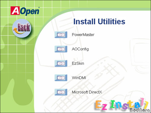 µÎ ¹øÂ°´Â Aopen ¸ÞÀκ¸µåµé¿¡ Á¦°øµÇ´Â À¯Æ¿¸®Æ¼µé·Î Power Master ¹öÀü¿¡ Æ÷ÇÔµÈ Power Master ÇÁ·Î±×·¥, AOConfig, EzSkin, °¢Á¾ ¹ÙÀÌ¿À½º µîÀÇ Á¤º¸¸¦ º¼ ¼ö ÀÖ´Â WinDMI, DirectXµµ ÇÔ²² ¼³Ä¡°¡ °¡´ÉÇÏ´Ù. ¹ÙÀÌ¿À½º¿¡ Æ÷½ºÆÃµÇ´Â À̹ÌÁö¸¦ º¯°æÇÒ ¼ö ÀÖ´Â ÇÁ·Î±×·¥ÀÎ EzSkinÀÇ °æ¿ì Hyper-Threading Technology¸¦ ºñȰ¼ºÈÇØÁÖ¾î¾ß »ç¿ëÀÌ °¡´ÉÇß´Ù.