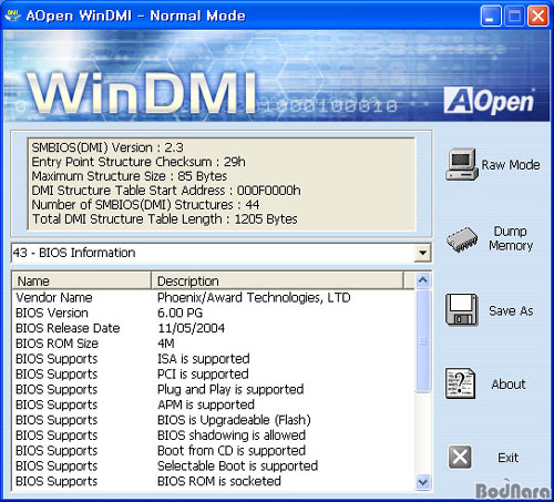 WinDMI´Â ¹ÙÀÌ¿À½º³ª ½Ã½ºÅÛ ÀåÄ¡µéÀÇ ¼¼ºÎÀûÀÎ ³»¿ëÀ» È®ÀÎÇØº¼ ¼ö ÀÖ´Â ÇÁ·Î±×·¥ÀÌ´Ù.