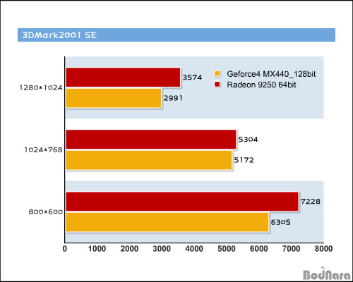 DX7 ¼¼´ëÀÎ MX440 128bit¿Í DX8 ¼¼´ëÀÎ Radeon 9250 64bit´Â 1024*768 ÇØ»óµµ¿¡¼­ °ÅÀÇ ºñ½ÁÇÑ ½ºÄھ º¸ÀÌÁö¸¸, ´Ù¸¥ ÇØ»óµµ¿¡¼­´Â 9250 64bit°¡ ´õ ¾Õ¼³ »Ó¸¸ ¾Æ´Ï¶ó ƯÈ÷ WOW¿Í °°Àº DX8.1 ±â¹Ý °ÔÀÓ¿¡¼­´Â ´õ ÁÁÀº È­Áú·Î °ÔÀÓÀ» Áñ±æ ¼ö ÀÖ´Ù. ¶§¹®¿¡ ÃÖÀú°¡ ±âÁØ 3¸¸ 5õ¿ø ¼±°ú 4¸¸ 5õ¿øÀÇ ¼±ÅÃÀÇ ±â·Î¿¡ ¼¹À» ¶§, ¸¸¿ø Á¤µµ´Â ÇÑ ¼¼´ë ¾Õ¼± Á¦Ç°À» ¼±ÅÃÇÏ´Â °ÍÀÌ Çö¸íÇÒ °ÍÀÌ´Ù. ÀÌ·¯ÇÑ ºÎºÐÀº ºñ½ÁÇÑ °¡°Ý´ëÀÇ DX8.1°ú DX9 ¼¼´ë ±×·¡ÇÈÄ«µå »çÀÌ¿¡¼­ÀÇ °¥µî¿¡¼­µµ Àû¿ëµÈ´Ù. ÅõÀÚÇÒ ¼ö ÀÖ´Â ºñ¿ë¿¡ ¿©À¯°¡ ÀÖ´Ù¸é ¾à°£ÀÇ °¡°Ý Â÷À̸¦ ¾Æ±î¿öÇÏÁö ¸»ÀÚ.