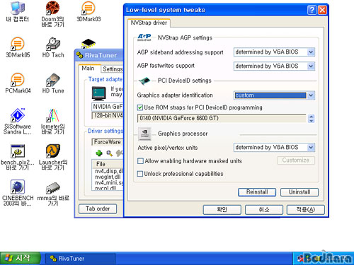 À§ÀÇ À̹ÌÁö°¡ RivaTuner ÃֽŹöÀüÀ» ÅëÇØ PCI DeviceID ¹øÈ£¸¦ Geforce 6600 GT·Î º¯°æÇÑ °ÍÀε¥ ¾Æ½±°Ôµµ RivaTunerÀÇ ÃֽŹöÀüÀº ù ¹øÂ° µð½ºÇ÷¹ÀÌ ÀåÄ¡¸¸ Nvstrap ±â´ÉÀ» Àû¿ëÇÒ ¼ö ÀÖ°Ô µÇ¾î ÀÖ´Ù. µÎ °³ÀÇ INSIDE HAN 6600 EX¸¦ ¸ðµÎ GeForce 6600 GT·Î ÀνĽÃŰÁö´Â ¸øÇß´Ù.