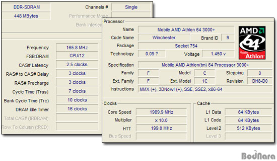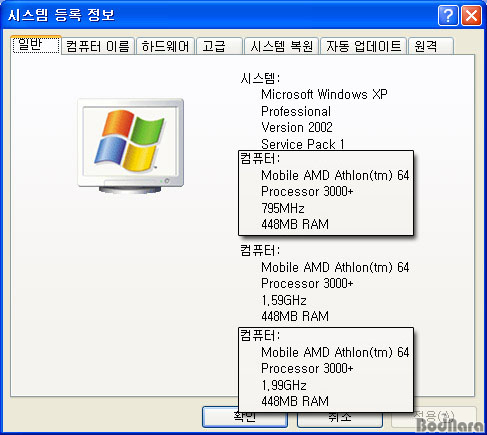 ½Ã½ºÅÛ µî·Ï Á¤º¸¿¡¼ CPU Á¤º¸¿Í µ¿ÀÛ Å¬·°, ¸Þ¸ð¸® ¿ë·® µîÀ» ÆÄ¾ÇÇÒ ¼ö Àִµ¥, Power NOW! ±â¼úÀ» »ç¿ëÇÏ°Ô µÇ¸é ³ëÆ®ºÏÀÇ ÀÛ¾÷¿¡ µû¶ó 795MHz¿¡¼ 2GHz±îÁö Ŭ·°À» º¯°æÇÏ¿© Àü·Â ¼Ò¸ð¸¦ ÁÙÀÌ°Ô µÈ´Ù. ³»Àå ±×·¡ÇÈ ±â´É¿¡ 64MBÀÇ ½Ã½ºÅÛ ¸Þ¸ð¸®¸¦ ÇÒ´çÇϰí ÀÖ¾î, 512MB ¸Þ¸ð¸®°¡ ´Þ·ÁÀÖÁö¸¸ ½ÇÁ¦·Î´Â 448MB¸¸À» »ç¿ëÇÒ ¼ö ÀÖ´Ù.