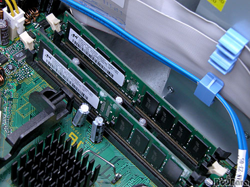 »ç¿ëµÈ Micron»çÀÇ DDR2 SDRAMÀº PC4300À¸·Î DDR 533MHz·Î µ¿ÀÛÇϰí ÀÖÀ¸¸ç, BGA ŸÀÔÀÇ ¸Þ¸ð¸®¸¦ »ç¿ëÇÑ °ÍÀÌ Æ¯Â¡ÀÌ´Ù. DDR2 SDRAMÀº °í¼Óµ¿ÀÛ°ú ¹ß¿ÀÌ º¸´Ù Àû°í ¼Òºñ Àü·ÂÀÌ ÀûÀº BGA ŸÀÔÀÇ ¸Þ¸ð¸® ¸ðµâÀ» »ç¿ëÇϰí ÀÖ´Ù. ¸Þ¸ð¸® ¿ë·®Àº BGA ŸÀÔ ¸ðµâ Çϳª ´ç 32MB·Î ¾ç¸é ÃÑ 16°³·Î ±¸¼ºµÇ¾î 512MBÀ̰í 2°³¸¦ »ç¿ëÇÏ¿© 1GBÀÇ ¿ë·®À» Á¦°øÇÑ´Ù.