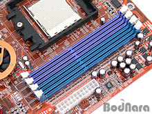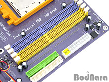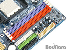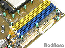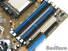 3°³¸¦ Á¦°øÇÑ´Ù. ¸Þ¸ð¸® ½½·ÔÀº ´Ù¸¥ ¸ÞÀκ¸µåµé°ú ¸¶Âù°¡Áö·Î DDR SDRAM¸¸À» Áö¿øÇϸç, ½½·Ô º°·Î »ö»óÀ» Àû¿ëÇÏ¿© µà¾ó