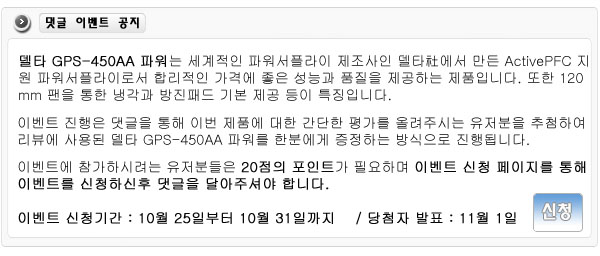 ¾ÆÁÖ °í°¡ÀÇ ÆÄ¿öº¸´Ü °¡°Ý´ë ¼º´Éºñ ¿ì¼öÇÑ µ¨Å¸ÆÄ¿ö°¡ ±¦Âú´Ù°í »ý°¢µå´Â±º¿ä.ÀϹݻç¿ëÀڵ鿡°Õ °í°¡ÀÇ ÆÄ¿ö´Â µÅÁö¸ñÀÇ ÁøÁÖ¸ñ°ÉÀÌÁÒ(¿äÁò ÁøÁÖ°¡ º¸¼®Àΰ¡? @ @) ºñ½Î´Ù°í ÁÁÀº°Ç ¾Æ´Ï¶õ ¸»¾¸..Active PFC´Â °í±ÞÇü¿¡³ª µé¾î°¡ÁÒ.. µà¾ó Ãâ·Â¿¡ µ¨Å¸ÆÄ¿ö...Àû´çÇÑ °¡°Ý...ÁÁÀº Á¦Ç°°°³×¿ä..