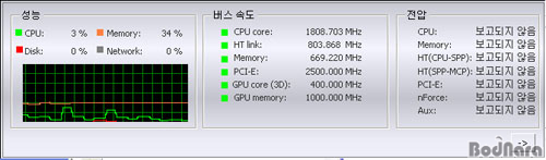 nTune 5.0À» ¼³Ä¡Çϸé nVIDIA MONITOR¶ó´Â º°µµÀÇ ½Ç½Ã°£ ¸ð´ÏÅ͸µ ÇÁ·Î±×·¥µµ ±ò¸®´Âµ¥, À§ÀÇ À̹ÌÁöó·³ CPU¿Í ¸Þ¸ð¸®, µð½ºÅ©, ³×Æ®¿öÅ© »ç¿ë·üÀ» ±×·¡ÇÁ¿Í ¼öÄ¡·Î Ç¥½ÃÇØÁÖ¸ç ¹ö½º ¼Óµµ¿Í Àü¾ÐÀ» º¸¿©ÁØ´Ù. KN9 SLI°¡ nTune 5.0ÀÇ Àü¾Ð Á¶Àý ±â´ÉÀ» Áö¿øÇÏÁö ¾Ê´Â °ü°è·Î ¸ð´ÏÅ͸µ ÇÁ·Î±×·¥¿¡¼­µµ Àü¾Ð Á¤º¸´Â È®ÀεÇÁö ¾Ê´Â´Ù.