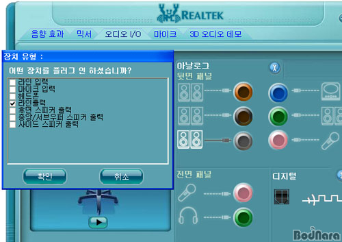 Realtek ALC883 ÄÁÆ®·Ñ·¯¸¦ ´Þ¾Æ HD Audio¸¦ Áö¿øÇϹǷΠ»ç¿îµå µå¶óÀ̹ö´Â RealtekÀÇ °ÍÀÌ »ç¿ëµÈ´Ù. ¸Þ´º ±¸¼ºÀº ±âÁ¸ÀÇ »ç¿îµå Á¦¾îÆÇ°ú Å©°Ô ´Ù¸£Áö ¾Ê¾Æ º¹ÀâÇÑ ¼ÂÆÃÀ» ¿øÇÏ´Â »ç¶÷Àº ±× »ç¶÷¿¡°Ô ¸Â°Ô²û, ÇÊÀÚó·³ ´Ü¼øÇÏ°Ô ±âº»°ªÀ¸·Î ¾²´Â »ç¶÷Àº ½ºÇÇÄ¿ °¹¼ö¸¸ ´ëÃæ ¸ÂÃç¼­ ¿¬°áÇØµµ µÈ´Ù.