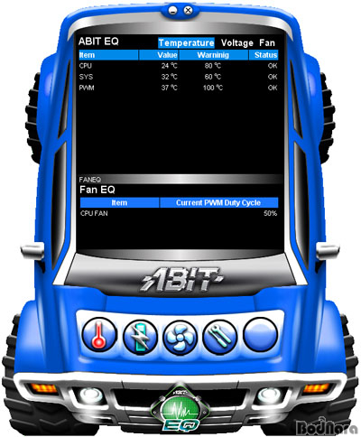 À©µµ¿ìÁî Çϵå¿þ¾î ¸ð´ÏÅ͸µ ÇÁ·Î±×·¥ÀÎ ABIT EQ´Â ½ºÅ² È­¸éÀÌ À§¿¡¼­ º» 4WD ÀÚµ¿Â÷ó·³ ¹Ù²î¾ú´Ù. ±×·¯³ª ¸ð´ÏÅ͸µ È­¸é¿¡ ºñÇØ ½ºÅ²ÀÇ Àüü Å©±â°¡ ³Ê¹« Ä¿¼­ ºñÈ¿À²ÀûÀÌ´Ù. ¸Þ´º´Â ¾Æ·§ ºÎºÐ¿¡ ¾ÆÀÌÄÜÀ¸·Î ¸¸µé¾î³õ¾ÒÁö¸¸ ¿¹Àü ABIT EQ¿¡ ºñÇØ ¿ÀÈ÷·Á º¸±â´Â ´õ ÁÁÁö ¾Ê´Ù. ¸®Å×ÀÏ Á¦Ç°¿¡¼­´Â ÇÁ·Î±×·¥ Å©±â¸¦ ÁÙÀÎ ½ºÅ²À» »ç¿ëÇßÀ¸¸é ÇÏ´Â ¹Ù·¥ÀÌ´Ù.