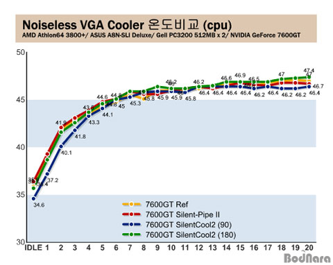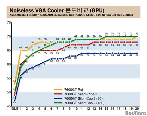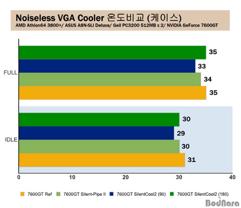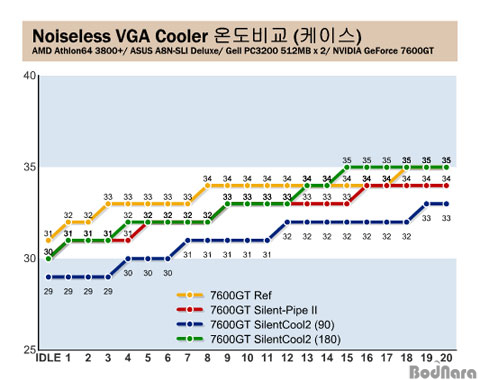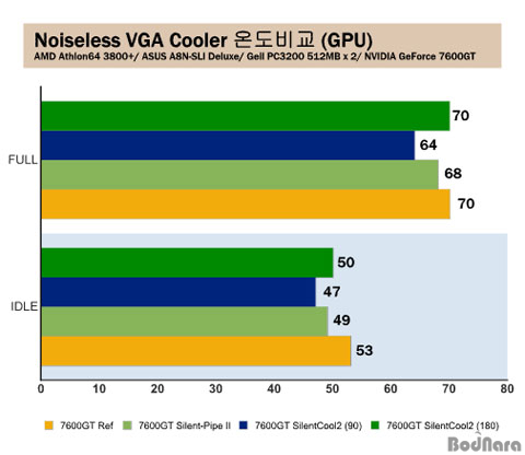 CPU´Â ¹ß¿­ÀÌ ³ôÁö ¾ÊÀº Athlon64 3800+¸¦ »ç¿ëÇÏ¿´°í ¿ÏÀü ¹«¼ÒÀ½ VGA Ä𷯵éÀÌ ±âº»À¸·Î ÀåÂøµÇ´Â ±×·¡ÇÈ Ä«µå°¡ ´ëºÎºÐ Áß°í±ÞÇüÀÓÀ» °í·ÁÇÏ¿© GeForce 7600GT¸¦ ¼±ÅÃÇÏ¿´´Ù.