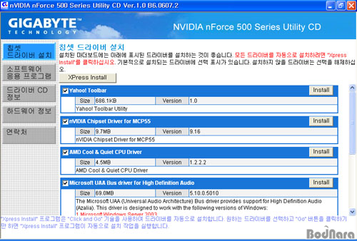 GA-M57SLI-S4ÀÇ µå¶óÀ̹ö CD¿¡´Â ¸ÞÀκ¸µå »ç¿ë¿¡ ÇÊ¿äÇÑ °¢Á¾ µå¶óÀ̹ö »Ó¸¸ ¾Æ´Ï¶ó GIGABYTE¿¡¼­ Á¦°øÇÏ´Â Àü¿ë À¯Æ¿¸®Æ¼µéµµ Æ÷ÇԵǾî ÀÖ´Ù. µå¶óÀ̹ö CD¸¦ ³ÖÀ¸¸é ÀÚµ¿ÀûÀ¸·Î ÇØ´ç ¸ÞÀκ¸µå¸¦ °Ë»öÇØ¼­ ¼³Ä¡¿¡ ÇÊ¿äÇÑ µå¶óÀ̹öµéÀ» ¸ð¾Æ ÇѲ¨¹ø¿¡ ¼³Ä¡ÇÒ ¼ö ÀÖ´Â XPress Install ±â´ÉÀ» Á¦°øÇϰí ÀÖ´Ù.
