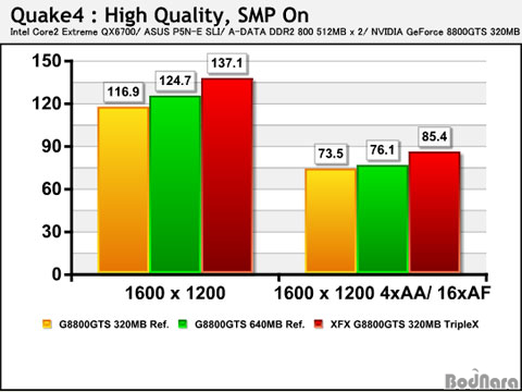 ÀÖÀ½À» È®ÀÎÇÒ ¼ö ÀÖ´Â °á°úÀÌ´Ù. XFX 8800GTS 320MB TripleX´Â ÄÚ¾î¿Í ¸Þ¸ð¸®, ½¦ÀÌ´õ Ŭ·°ÀÌ ·¹ÆÛ·±½º¸¦