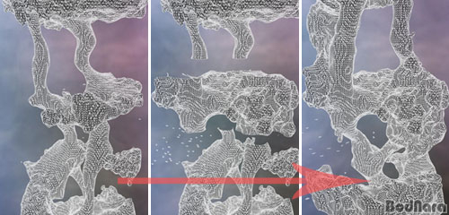 GŰ´Â ·£´ý Áö¿À¸ÞÆ®¸® ±â´ÉÀ¸·Î ¹ÙÀ§ÀÇ ¸ð¾çÀ» º¯È­½ÃŲ´Ù. ¿ÍÀ̾îÇÁ·¹ÀÓÀ¸·Î »ìÆìº¸¸é ´Ü¼øÈ÷ °°Àº Áٱ⿡¼­ »¸¾î³ª¿Â ¸ð¼­¸®°¡ ¹Ù²î´Â°Ô ¾Æ´Ï¶ó ¹ÙÀ§ ÀüüÀÇ ±¸¼ºÀÌ ¿ÏÀüÈ÷ ¹Ù²î°Ô µÈ´Ù. ¹°·Ð »õ·Î »ý¼ºµÈ ¹ÙÀ§µµ ¸ðµç Ç¥¸éÀ̳ª ±¼°î ÀÌÀ½»õ°¡ Àß µé¾î¸Â´Â´Ù.