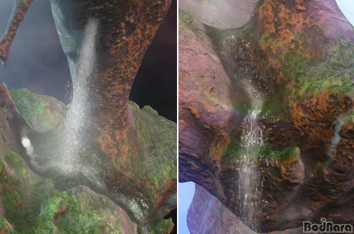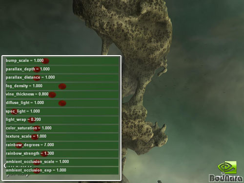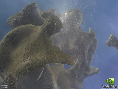 nVIDIA°¡ CascadesÀÇ Æ¯Â¡À¸·Î ¼Õ²ÅÀº °ÍÀº '¼øÂ÷ÀûÀÎ Áö¿À¸ÞÆ®¸® âÀÛ(Procedural Geometry Creation)', '¿ªµ¿Àû ÀÔÀÚ ¿¬»ê(Dynamic Particle Physics)', ±×¸®°í 'À§Ä¡º¯È¯ ¸ÅÇÎ(Displacement Mapping)'ÀÌ´Ù. ¼øÂ÷ÀûÀÎ Áö¿À¸ÞÆ®¸® âÀÛÀ̳ª À§Ä¡º¯È¯ ¸ÅÇÎÀº À§/¾Æ·¡·Î ²÷ÀÓ¾øÀÌ ¿òÁ÷ÀÏ ¼ö ÀÖ´Â ¹ÙÀ§ÀÇ ¸ð¼­¸®³ª µ¹ÃâºÎ°¡ ¼­·Î ²÷±âÁö ¾Ê°í À̾îÁö¸é¼­ ¸Â¹°¸®µµ·Ï ¸¸µç °ÍÀÌ´Ù. ¿ªµ¿Àû ÀÔÀÚ ¿¬»êÀº µÚ¿¡¼­ º¸°ÚÁö¸¸ ¹ÙÀ§¿¡¼­ ³ª¿À´Â ¹°ÀÌ Ç¥¸é¿¡ ºÎµúÈ÷°í, Ç¥¸éÀÇ ±¼°îÀ» µû¶ó È帣´Â ¹°¸®¿¬»êÀ» GPU·Î ±¸ÇöÇÑ´Ù.