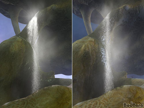°°Àº ¹°ÀÌ È帣´Â Àå¸éÀ̶ó°í ÇØµµ ±¤¿øÀÇ È¿°ú¸¦ ¹Ù²ãÁÜ¿¡ µû¶ó ¹°¿¡ ºûÀÌ ¹Ý»çµÈ´Ù°Å³ª ¹°ÀÌ È帣´Â ¹ÙÀ§ Ç¥¸éÀÌ °­Á¶µÇ´Â µîÀÇ º¯È­µµ »ý±ä´Ù. ±×·¯³ª ¹° ÀÚü´Â ¹°¹æ¿ïÀ̶ó°í Çϱ⠺¸´Ù´Â ¾Ë°»À̵éÀÌ ¶³¾îÁö´Â °Í °°ÀÌ ´À²¸Áø´Ù.