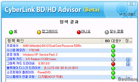 Blu-Ray°¡ ¾ø´Ù¸é Cyberlink¿¡¼ Á¦°øÇÏ´Â BD/HD Advisor¸¦ ÀÌ¿ëÇϸé È®ÀÎÀÌ °¡´ÉÇÏÁö¸¸ ¾ÆÁ÷±îÁö 100% Á¤È®ÇÑ °á°ú¸¦ º¸¿©ÁÖÁö´Â ¸øÇÑ´Ù.(Âü°í·Î À̹ø Å×½ºÆ®¿¡ »ç¿ëÇÑ ¸ÞÀκ¸µå´Â »ùÇà ´Ü°èÀÇ Á¦Ç°ÀÌ¶ó¼ ¸î¸î ¹ö±×µîÀÌ ´«¿¡ ¶ç¾ú´Ù)   AMD 690G, DXVA ¾îµð±îÁö Áö¿øÇϳª? HDCP¿Í HDMI°¡ ÇÊ¿äÇÑ ÀÌÀ¯´Â °íÈÁú ¿µÈ¸¦ PC¿¡¼ °¨»óÇϱâ À§ÇؼÁö¸¸ HDCP¿Í HDMI¸¸ Áö¿øÇÑ´Ù°í Blu-Ray¿Í HD-DVD ¿µÈ¸¦ °¨»óÇÒ ¼ö´Â ¾ø´Ù.  °¢ ¹Ìµð¾î¿¡ ¾ÐÃàµÇ¾î ÀúÀåµÇ¾î ÀÖ´Â ¿µ»óÀ» µðÄÚµù½ÃÄÑ Àç»ýÇØ³»´Â ÀÛ¾÷À» °ÅÃľߠ¿ÜºÎ ¸ð´ÏÅÍ·Î Ãâ·Â½Ãų¼ö ÀÖÁö¸¸ ÀÌ ÀÛ¾÷ÀÇ ºÎÇϰ¡ »ó´çÇϱ⠶§¹®¿¡ ºÎµå·´°Ô Àç»ýµÇÁö ¸øÇϰí ȸéÀÌ ²÷±â¸é¼ Àç»ýµÇ´Â °æ¿ìµµ ÀÖ´Ù. ÀÌ·± ¹®Á¦¸¦ ÇØ°áÇϰíÀÚ ¿ÜÀå ±×·¡ÇÈÄ«µå¸¦ ÅëÇØ µðÄÚµù ½ÃÄÑÁÖ´Â ±â¼úÀÌ »ç¿ëµÇ°í Àִµ¥ AMD 690G´Â ¾îµð±îÁö Çϵå¿þ¾î µðÄÚµùÀ» Áö¿øÇÒÁö ¾Ë¾Æº¸µµ·Ï ÇϰڴÙ. Å×½ºÆ®´Â Blu-Ray¿Í HD-DVD¿¡ »ç¿ëµÇ´Â ºñµð¿À Æ÷¸ËÀÎ MPEG-4 AVC¿Í MPEG-2 Æ÷¸ËÀÇ µ¿¿µ»óÀ» Cyberlink PowerDVD 7.2 Ultra¸¦ ÀÌ¿ëÇØ Àç»ýÇÒ ¶§ DXVA °¡¼ÓÀÌ È°¼ºÈ µÇ´Â°¡¸¦ üũÇÏ´Â ¹æ½ÄÀ¸·Î ÁøÇàÇÏ¿´À¸¸ç ¼Ò½ºÀÇ ÇØ»óµµº°·Î Áö¿ø À¯¹«°¡ ´Þ¶óÁö±â ¶§¹®¿¡ 480p, 720p, 1080p·Î ³ª´©¾î¼ Å×½ºÆ®ÇÏ¿´´Ù.
