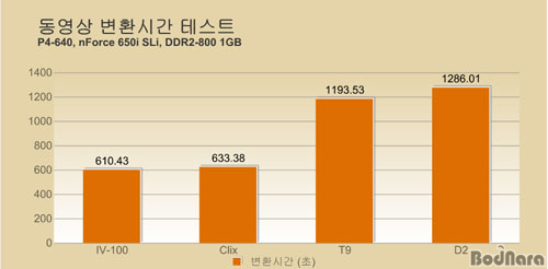 Å×½ºÆ® °á°ú 220x176ÇØ»óµµ¿¡ 24ÇÁ·¹ÀÓÀ¸·Î º¯È¯ÇÏ´Â IV-100ÀÌ °¡Àå ªÀº º¯È¯ ½Ã°£À» °¡Áö°í ÀÖÀ¸¸ç, Clix¿Í T9, D2°¡ ±× µÚ¸¦ µû¸£°í ÀÖ´Ù. D2ÀÇ °æ¿ì AVI Çü½ÄÀ¸·Î º¯È¯Çϴµ¥´Ù ÃÖ»óÀÇ Ç°Áú°ú ÇÁ·¹ÀÓÀ» ¼³Á¤ÇØ º¯È¯½Ã°£ÀÌ °¡Àå ±ä °ÍÀ¸·Î ÆÇ´ÜµÇ¸ç, ±×¿¡ ºñÇØ T9´Â °¡Àå ³·Àº ÇØ»óµµ¿Í ÇÁ·¹ÀÓÀ¸·Î º¯°æÇÏÁö¸¸, º¯È¯¼Óµµ´Â ±×¿¡ ¸ø¹ÌÄ¡´Â °ÍÀ» È®ÀÎÇÒ ¼ö ÀÖ´Ù. ÀÌ´Â »ï¼ºÀÌ SMSÀÇ µ¿¿µ»ó ºÎºÐ º¯È¯¿¡ ´ëÇØ ½Å°æÀ» ´ú ¾²°í ÀÖ´Â °ÍÀ¸·Î È®ÀÎÇÒ ¼ö ÀÖÀ¸¸ç, Á¦Æ®¿Àµð¿À·Î À¯¸íÇÑ COWONÀº º¯È¯¹æ¹ý ¼³Á¤À» »ç¿ëÀÚ¿¡°Ô ¸Â°Ü³õ¾Æ ¿øÇÏ´Â ´ë·Î ¸¸µé ¼ö ÀÖ´Â ºÎºÐÀ» Á¦°øÇϰí ÀÖ´Ù´Â ÀåÁ¡À» °¡Áö°í ÀÖ´Ù.