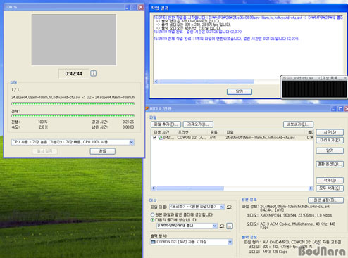 MP3P ¸¶´Ù Áö¿øÇÏ´Â ÇØ»óµµ¿Í ÇÁ·¹ÀÓ, ÄÚµ¦ Â÷À̰¡ Àֱ⠶§¹®¿¡, °¢ ±â±âº° º¯È¯ ÇÁ·Î±×·¥À» ¸¶·ÃÇØ µÎ°í ÀÖ´Ù. ÇØ»óµµ¸¦ º¯°æÇÏ´Â °ÍÀº ÁÁÁö¸¸, º¯È¯ ½Ã°£ÀÌ ±æ¸é, Áö·çÇØ Áö´Â »ç¿ëÀÚ°¡ ºÐ¸íÈ÷ Á¸ÀçÇϱ⠶§¹®¿¡ °¢°¢ÀÇ ÇÁ·Î±×·¥¿¡¼­ µ¿ÀÏÇÑ ÆÄÀÏÀ» º¯°æÇØ º¸¾Ò´Ù. µ¿¿µ»ó ÆÄÀÏÀº 960x544 ÇØ»óµµ¿¡ 42ºÐ 44ÃÊÀÇ Àç»ý½Ã°£, AC-3 ACM ¿Àµð¿À ÄÚµ¦°ú XviD ºñµð¿À ÄÚµ¦À» »ç¿ëÇÑ 23ÇÁ·¹ÀÓ 691MB¸¦ ±âÁØÀ¸·Î °¢°¢ Áö¿øÇÏ´Â º¯È¯ ÇÁ·Î±×·¥ÀÇ ÃÖ´ë ÇØ»óµµ·Î ¼³Á¤ÇØ Å×½ºÆ®¸¦ ÁøÇàÇß´Ù.