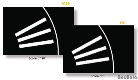 À̹ø Å×½ºÆ® ¿ª½Ã HD ¿µ»óÀÇ À̹ÌÁö ǰÁúÀ» Æò°¡ÇÏ´Â ºÎºÐÀ¸·Î 1080i Àüü È­¸é¿¡¼­ÀÇ µðÀÎÅÍ·¹À̽ÌÀ» Á¦´ë·Î ÇØÁÖ´ÂÁö¸¦ Æò°¡ÇÏ´Â ºÎºÐÀÌ´Ù. Å×½ºÆ®¿¡¼­ Á¡¼ö´Â ³ë¶õ»öÀÇ Á÷»ç°¢Çü ºÎºÐÀÌ ÇÏ¾á ¹Ú½ºÀÇ °ËÀº Á¤»ç°¢ÇüÀ̳ª ÇϾá Á¤»ç°¢ÇüÀÌ ±ô¹Ú°Å¸± °æ¿ì ½ÇÆÐÇÑ À̹ÌÁö´Ù. Á¡¼ö´Â ³ë¶õ»ö 5°³ÀÇ ¹Ú½º ºÎºÐ¿¡ ¸ðµÎ °ËÁ¤À̳ª ÇϾá»ö Á¤»ç°¢ÇüÀÌ ±¸¼®¿¡ ³ªÅ¸³ªÁö ¾ÊÀ» ¶§¿Í ÇϾá»ö ¹Ù°¡ °è´Ü Çö»óÀÌ ¹ß»ýÇÏÁö ¾ÊÀ» ¶§ 20, ¹Ú½º ±¸¼® ºÎºÐ¿¡ ÇϾá»öÀ̳ª °ËÁ¤»ö, ÇϾá»ö ¹Ù°¡ °è´Ü Çö»óÀÌ ¹ß»ýÇϸé 0Á¡ÀÌ´Ù.