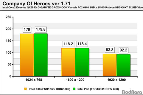 ÀÖÀ½À» È®ÀÎÇÒ ¼ö ÀÖ´Ù. ÀÌÁß 3DMark06°ú Quake4ÀÇ °æ¿ì ¾Õ¼ÀÇ °á°úµé°ú °°ÀÌ P35°¡ ¾Õ¼¹Áö¸¸, COHÀÇ °æ¿ì