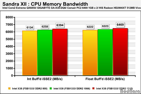 ±âº» ¼º´É Å×½ºÆ®ÀÇ DDR2 800MHz¿Í DDR2 1066MHz, DDR2 1110MHzÀÏ ¶§ÀÇ ¸Þ¸ð¸® ´ë¿ªÆøÀº ¸Þ¸ð¸®