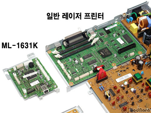 ¸ÕÀú ºñ±³ÇÒ ºÎǰÀº ·¹ÀÌÀú ÇÁ¸°ÅÍÀÇ ÇÙ½É ºÎǰÀÎ ¸ÞÀκ¸µå¿Í Àü¿ø °ø±ÞÀåÄ¡´Ù. ³ì»ö ±âÆÇÀÇ ¸ÞÀκ¸µå´Â ÇÑ ´«¿¡ º¸±â¿¡µµ ML-1631K ÂÊÀÌ ÈξÀ ÀÛ´Ù´Â °ÍÀ» ¾Ë ¼ö ÀÖÁö¸¸ Àü¿ø °ø±ÞÀåÄ¡´Â ML-1631K ÂÊ 2°³ÀÇ ±âÆÇÀ» ÇÕÄ£´Ù¸é ºñ±³ ´ë»ó Á¦Ç°°ú Å©°Ô Â÷À̰¡ ³ªÁö ¾Ê´Â´Ù.