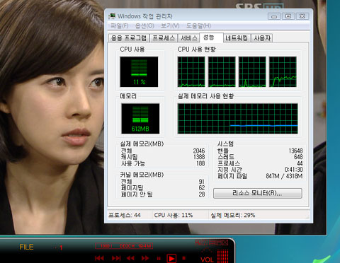¸¶Áö¸·À¸·Î HD ¹æ¼Û ¼ö½Å½Ã ¹× ³ìÈ­µÈ TPÆÄÀÏÀÇ Àç»ý½Ã °¢°¢ÀÇ CPU Á¡À¯À²À» »ìÆìº¸¾Ò´Ù. Âü°í·Î HD¹æ¼Û ¼ö½Å½Ã µðÄÚ´õ ¼³Á¤Àº 'ÅëÇÕ ºñµð¿À µðÄÚ´õ'¸¦ »ç¿ëÇÏ¿´À¸¸ç Çϵå¿þ¾î ºñµð¿À µðÄÚµù °¡¼Ó ±â´É (DxVA)À» Ȱ¼ºÈ­ ÇÏ¿´´Âµ¥, À§¿¡¼­ º¸´Â °Íó·³ HD¹æ¼Û ¼ö½Å½Ã Çϵå¿þ¾î °¡¼ÓÀ¸·Î ÀÎÇØ CPU Á¡À¯À²Àº ²ÙÁØÈ÷ 10~12%¸¦ À¯ÁöÇϰí ÀÖÀ¸¸ç TP ÆÄÀÏÀÇ Àç»ý½Ã¿¡µµ ¿ª½Ã 10% ´ëÀÇ CPU Á¡À¯À²À» º¸¿©ÁÖ°í ÀÖ´Ù. ÀÌÁ¤µµ¶ó¸é TV¸¦ º¸¸é¼­ ÄèÀûÇÏ°Ô ¸ÖƼŽºÅ·ÀÌ °¡´ÉÇÑ ¼öÁØÀ̸ç ÀÌ´Â °÷ ¼ÒÇÁÆ®¿þ¾î ¹æ½ÄÀÇ Á¦Ç°¿¡ ºñÇØ Â÷º°È­¸¦ º¸ÀÌ´Â ºÎºÐÀ̶ó°í ÇÒ ¼ö ÀÖ°Ú´Ù.