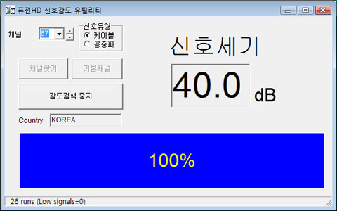 ¸¶Áö¸·À¸·Î »ìÆìº¼ À¯Æ¿¸®Æ¼´Â ¹Ù·Î HD ¹æ¼ÛÀÇ ½ÅÈ£ °¨µµ¸¦ »ìÆìº¼ ¼ö ÀÖ´Â ÇÁ·Î±×·¥ÀÌ´Ù. ÀÌ ÇÁ·Î±×·¥Àº ½ÇÁ¦ TVÇÁ·Î±×·¥À» ½ÇÇàÇÏÁö ¾Ê°íµµ ä³Îº° ½ÅÈ£ ¼¼±â¸¦ È®ÀÎÇÒ ¼ö Àֱ⠶§¹®¿¡ ÇöÀç ÀÚ½ÅÀÇ È¯°æ¿¡¼­ HD¹æ¼ÛÀÇ ¼ö½Å ¿©ºÎ¸¦ È®ÀÎÇÒ ¼ö ÀÖ´Ù.