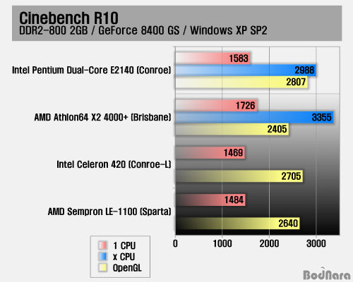 CinbeBench R10À» ÅëÇØ CPU ¼º´ÉÀ» ÃøÁ¤ÇÑ °á°ú ½Ì±Û CPU ¹× ¸ÖƼ CPU Å×½ºÆ® ¸ðµÎ AMD CPUµé ¼ÂÊÀÌ ³ôÀº Á¡¼ö¸¦ ±â·ÏÇßÀ¸³ª, ±×·¡ÇÈ ·»´õ¸µÀÌ µé¾î°¡´Â OpenGL Å×½ºÆ®¿¡¼­´Â ÀÎÅÚ ½Ã½ºÅÛ °á°ú°¡ ³ô°Ô ³ª¿Ô´Ù.