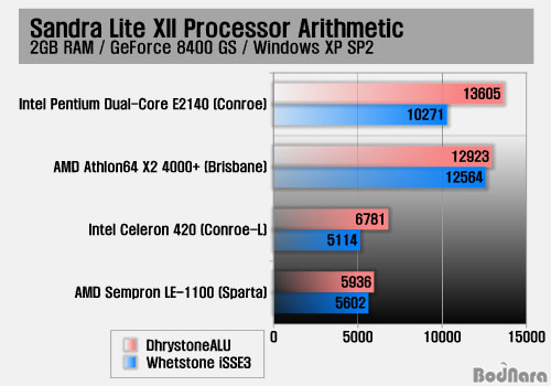 Sandra Lite XII CPU Á¤¼ö¿¬»ê Å×½ºÆ® °á°ú´Â ALU °á°ú´Â ÀÎÅÚÀÌ ³ô¾ÒÁö¸¸ ºÎµ¿¼Ò¼öÁ¡ ¿¬»êÀÎ iSSE3¿¡¼­´Â AMD CPUµéÀÇ °á°ú°¡ ³ô°Ô ÃøÁ¤µÇ¾ú´Ù. µà¾ó ÄÚ¾î CPUµé°ú ½Ì±Û ÄÚ¾î CPUµéÀÇ ¼º´É Â÷ÀÌ´Â 2¹è¿¡ ´ÞÇÏ´Â °ÍÀ¸·Î ±â·ÏµÇÁö¸¸ º¥Ä¡¸¶Å© ÇÁ·Î±×·¥ °á°úÀ̱⠶§¹®¿¡ ½ÇÁ¦·Îµµ ¹«Á¶°Ç 2¹è¶ó°í ÇÏ±ä ¾î·Æ´Ù.