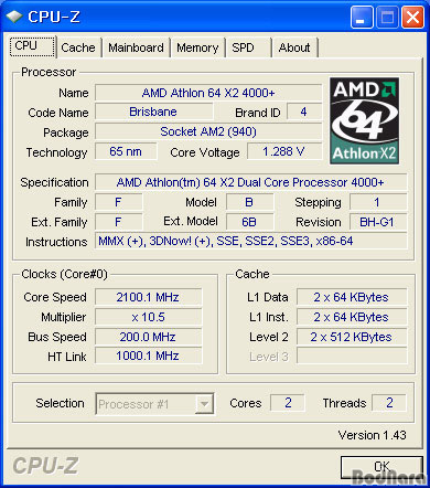AMD Athlon64 X2 4000+´Â 65nm °øÁ¤ÀÇ ºê¸®Áî¹ø(Brisbane) Äھ ±â¹ÝÀ¸·Î ¸¸µé¾îÁø CPU·Î µà¾ó ÄÚ¾î ÇÁ·Î¼¼¼­¿¡ 1MB L2 ij½Ã(512KBx2)¸¦ °¡Á³À¸¸ç, 2.1GHz·Î µ¿ÀÛÇÑ´Ù. °¡°Ý´ëºñ ¼º´ÉÀÌ ÁÁÀº Á¦Ç°À̰í ÇöÀç´Â ½ÃÀå¿¡¼­ ´ÜÁ¾µÇ¾î »óÀ§ ¸ðµ¨ÀÎ 4200+¿¡ ÀÚ¸®¸¦ ³Ñ°ÜÁÖ¾úÀ¸³ª º¸µå³ª¶ó¿¡ ¸¶Ä§ 4000+ »ùÇÃÀÌ À־ ±×³É »ç¿ëÇß´Ù. 65nm °øÁ¤À¸·Î ¸¸µé¾îÁ® ¼Òºñ Àü·Â 65W·Î ESTAR ST7025 mini ITXÀÇ CPU »ç¿ë Á¦ÇÑ¿¡ °É¸®Áö ¾Ê´Â´Ù.