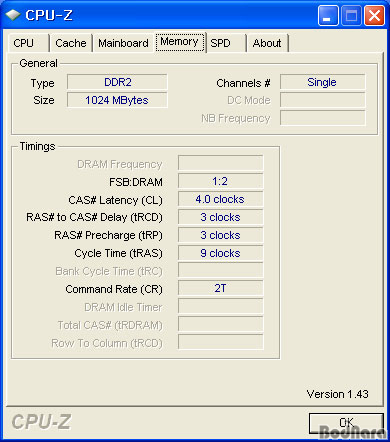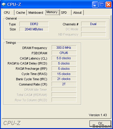 ¸Þ¸ð¸® Ŭ·°Àº Athlon64 X2 4000+¿Í ¸¶Âù°¡Áö·Î CPU/¸Þ¸ð¸® ¼³Á¤À¸·Î DDR2-600 Ŭ·°À¸·Î µ¿ÀÛÇϸç, ¸Þ¸ð¸® ŸÀ̹ÖÀº By SPD·Î ÇØ¼­ 4000+ÀÇ °Í°ú °°´Ù.