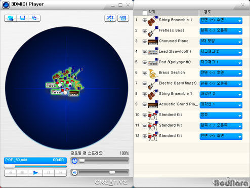´Ü¼øÈ÷ ÁÂ¿ì ¹èÄ¡ÀÇ ÆÐ´×(Panning) È¿°ú¸¦ ¹þ¾î³ª ´Ùä³Î ½ºÇÇÄ¿¸¦ Ȱ¿ëÇÑ ¼­¶ó¿îµå ¹Ìµð ±â´ÉÀ» Ȱ¿ëÇÒ ¼ö ÀÖ´Â 3D MIDI´Â ¹ÌµðÀ½¿ø¿¡ »ç¿ëµÈ ¾Ç±â¸¦ ¿øÇÏ´Â À§Ä¡·Î À̵¿½ÃÄÑ 3Â÷¿ø È¿°ú¸¦ »ç¿ëÇÒ ¼ö ÀÖ´Ù. X-Fi µå¶óÀ̹ö¿Í ÇÔ²² ¼³Ä¡µÇ´Â ¹Ìµð ÆÄÀÏÀ» Àü¿ë Ç÷¹À̾¼­ ¿­¾îº¸¸é, ¹Ìµð ÆÄÀÏÀ» Á¤Áö½ÃÄѳõÀº »óÅ¿¡¼­ ÇÊ¿äÇÑ ¾Ç±â¸¦ ¿øÇÏ´Â À§Ä¡ÇØ ¹èÄ¡½ÃÄÑ ³õÀ» ¼ö Àֱ⠶§¹®¿¡ ¼­¶ó¿îµå ±â´ÉÀ» Ȱ¿ëÇÒ ¼ö ÀÖ´Â ¹Ìµð ±â´ÉÀ¸·Î »ç·áµÈ´Ù.