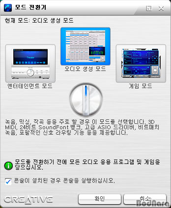 X-Fi´Â »ç¿îµå Ä«µåÀÇ È°¿ë ¸ñÀû¿¡ µû¶ó ¼¼ °¡Áö ¸ðµå¸¦ Á¦°øÇÑ´Ù. ¿£ÅÍÅ×ÀÎ¸ÕÆ® ¸ðµå´Â À½¾Ç°ú µ¿¿µ»ó¿¡ Ȱ¿ëÇÒ ¼ö ÀÖ´Â °£´ÜÇÑ ±â´ÉÀ» Á¦°øÇϸç, ¿Àµð¿À »ý¼º¸ðµå´Â ASIO¸¦ ºñ·ÔÇØ 3D-MIDI, 24bit »ç¿îµå ÆùÆ®, ºñÆ®¸ÅÄ¡ ³ìÀ½, ´Ù¾çÇÑ ½ÅÈ£ ¶ó¿ìÆÃ ±â´ÉÀ» ¼¼¹ÐÇÏ°Ô Á¶ÀýÇÒ ¼ö ÀÖ´Â ±â´ÉÀÌ´Ù.