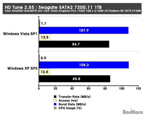 ÆÄÀÏ º¹»ç ¼º´ÉÀÇ Çâ»ó ºÎºÐÀ» À©µµ¿ì XP ¼ºñ½ºÆÑ3¿Í ÇÔ²² ºñ±³ÇØ º¸¾Ò´Ù. ¡¡ HD Tune 2.55 : Seagate SATA2