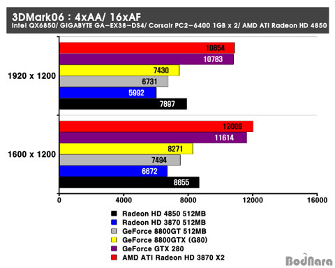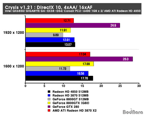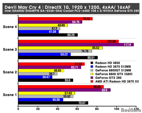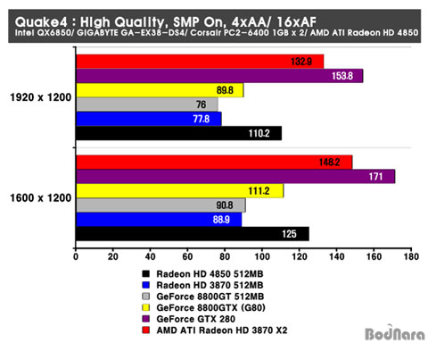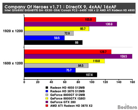8800GT°¡ ¼±ÀüÇØÁÖ°í ÀÖ´Ù. HD 4850Àº ÀÌ Å×½ºÆ®¿¡¼ AA/ AF¸¦ Àû¿ëÇÏÁö ¾Ê¾ÒÀ» ¶§ ¸¸Å ¼±Àü ÇØÁÖÁö´Â