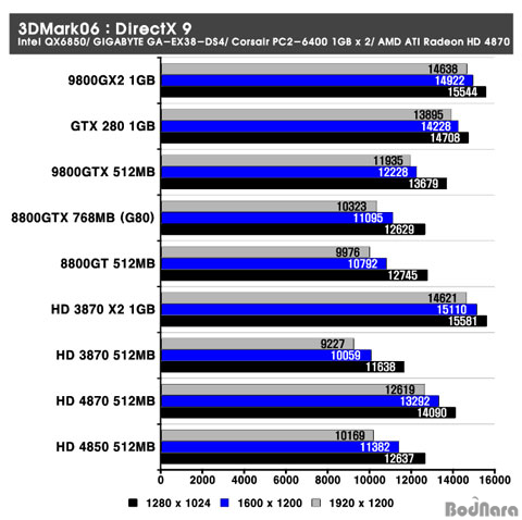 3DMark06 º¥Ä¡¸¶Å© Å×½ºÆ®¿¡¼ HD 4870Àº µà¾ó GPU ±¸¼ºÀÎ HD 3870 X2¸¦