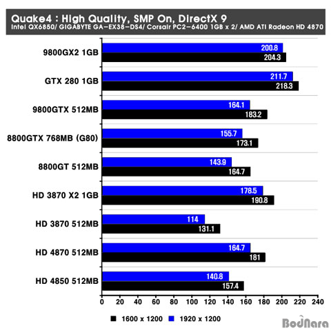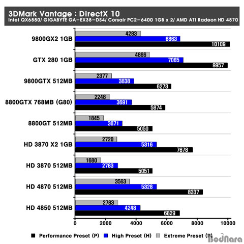 3870 X2¸¦ ºñ·ÔÇÏ¿© °æÀï»ç Á¦Ç°µéÀ» ¸ðµÎ ³Ñ¾î¼´Â ¼º´ÉÀ» º¸¿©ÁÖ°í ÀÖÁö¸¸, GeForce GTX 280À̳ª 9800