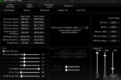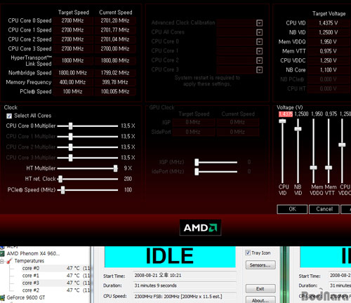 ¿À¹öŬ·° Å×½ºÆ®´Â ¸¹Àº ½Ã°£À» ÇÊ¿ä·Î ÇÏ´Â ¸¸Å­ ÇØ´ç CPUÀÇ ´Ù¾çÇÑ Å×½ºÆ®¸¦ ÁøÇàÇØ¾ß ÇÏÁö¸¸, Å×½ºÆ®¿¡ »ç¿ëµÈ Æä³Ñ X4 9600BE (2.3GHz, L3 2MB)ÀÇ ¿À¹öŬ·°ÀÌ Àß ÀÌ·ç¾îÁöÁö ¾ÊÀº Á¦Ç°À̶ó´Â Á¡ µîÀ¸·Î °£´ÜÈ÷ AMD 790GX + SB750°ú AMD 780G + SB700 Á¶ÇÕÀÇ µ¿ÀÏ Àü¾Ð »óȲ¿¡¼­ÀÇ °¡´ÉÇÑ Å¬·°À» È®ÀÎÇß´Ù. ¾ÈÁ¤¼º ¿©·¯ ½Ã°£¿¡ °ÉÃÄ ÃæºÐÈ÷ Å×½ºÆ®¸¦ ÁøÇàÇØ¾ß ÇÏÁö¸¸, ½Ã°£ »ó 30ºÐ °£ ÇÁ¶óÀÓÀ» µ¿ÀÛÇÏ¿© ÀÌ»óÀÌ ¾øÀ» °æ¿ì Åë°ú Ŭ·°À¸·Î º¸¾Ò´Ù.