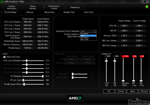ACC (Advanced Clock Calibration)´Â À©µµ¿ì¿ë AMD OverDrive À¯Æ¿¸®Æ¼¸¦ ÅëÇØ ¼³Á¤ÇÒ ¼öµµ ÀÖ°í ¸ÞÀκ¸µåÀÇ ¹ÙÀÌ¿À½º¿¡µµ À̸¦ Áö¿øÇÏ´Â ¸Þ´º°¡ AMD 790GX + SB750 Á¶ÇÕ ¸ÞÀκ¸µå³ª SB750°ú Á¶ÇÕµÈ ¸ÞÀκ¸µåµé¿¡ Æ÷ÇԵǾî À̸¦ ¼³Á¤ÇÒ ¼ö ÀÖµµ·Ï Çϰí ÀÖ´Ù. AMD OverDrive À¯Æ¿¸®Æ¼¸¦ ÀÌ¿ëÇÏ¸é ¹ÙÀÌ¿À½º ¼³Á¤ °ªµµ ÇÔ²² ¼³Á¤ÀÌ º¯È­µÈ´Ù.