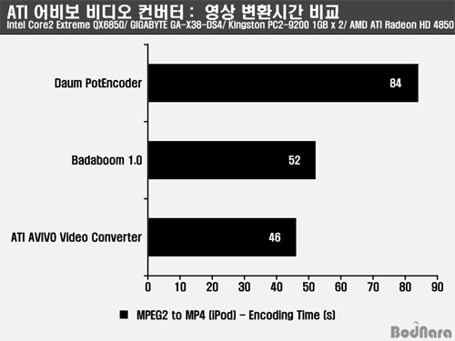 GPGPU À§ÇÑ ATI StreamÀ» Áö¿øÇÏ´Â ATI ¾îºñº¸ ºñµð¿À ÄÁ¹öÅÍ´Â NVIDIA CUDA¸¦ Áö¿øÇÏ´Â Æ®·£½ºÄÚµù ÇÁ·Î±×·¥ÀÎ Badaboom°ú ºñ±³µÉ ¼ö Àִµ¥ ¿©±â¿¡¼´Â ±¹³»¿¡¼ ¸¹Àº »ç¿ëÀÚµéÀÌ ½±°Ô »ç¿ëÇÏ´Â Æ®·£½ºÄÚµùÀ» °í·ÁÇÏ¿© °£´ÜÈ÷ iPod ºñµð¿À Çü½ÄÀ¸·Î º¯È¯ÇÏ´Â ½Ã°£À» ±¹³» Æ®·£½ºÄÚµù ÇÁ·Î±×·¥Àº ´ÙÀ½ ÆÌÀÎÄÚ´õ¸¦ Æ÷ÇÔÇÏ¿© ºñ±³Çغ¸¾Ò´Ù.