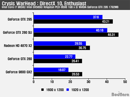 GTX 280º¸´Ùµµ ³·Àº ¼º´ÉÀ» º¸¿©ÁÖ°í ÀÖ´Ù. GTX 295´Â Å×½ºÆ® ÇØ»óµµ