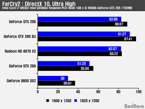 ³ôÀº ¼º´ÉÀ» º¸¿©ÁÖ°í ÀÖÀ¸¸ç, GeForce GTX 295ÀÇ Àü¹ÝÀûÀÎ ¼º´ÉÀº ÇÑ