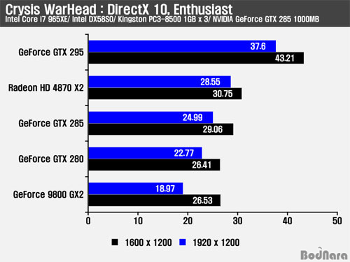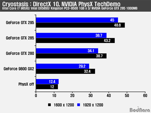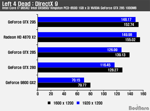 ½ºÆ©µð¿ÀÀÇ ÀΰøÁö´É ¹öÀü2¸¦ ±â¹ÝÀ¸·Î ¸¸µé¾îÁø °ÔÀÓÀ̸ç, ÇÏÇÁ¶óÀÌÇÁ ¿£Áø ±â¹ÝÀÇ °ÔÀÓµéÀÌ Radeon ±×·¡ÇÈ Ä«µåµé¿¡¼ °¼¼¸¦ º¸¿©ÁØ °Íó·³ µà¾ó GPUÀÎ HD 4870 X2´Â °æÀï Á¦Ç°ÀÎ GTX 295¸¦ ±Ù¼ÒÇÏ°Ô ¾Õ¼¹´Ù. ½Ì±Û GPU·Î ³ôÀº ¼º´ÉÀ» º¸¿©ÁÖ¾ú´ø GTX 280À» GTX 285°¡ °øÁ¤ °³¼±°ú ³ôÀº Ŭ·° Àû¿ëÀ¸·Î ¾ÕÁú·¶´Ù. GTX 285´Â 1600 x 1200¿¡¼´Â ¾à 8.5%, 1920 x 1200¿¡¼´Â ¾à 9.05%ÀÇ ¼º´É Çâ»óÀÌ ³ªÅ¸³µ´Ù.