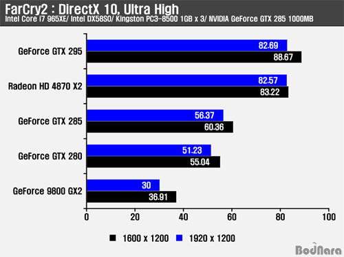 FarCry2´Â DirectX 10ȯ°æ°ú Ultra High, Very High·Î °¡Àå ³ôÀº ±×·¡ÇÈ ¼³Á¤ÇÑ ÈÄ Å×½ºÆ®¸¦ ÁøÇàÇß´Ù. Å×½ºÆ® °á°ú